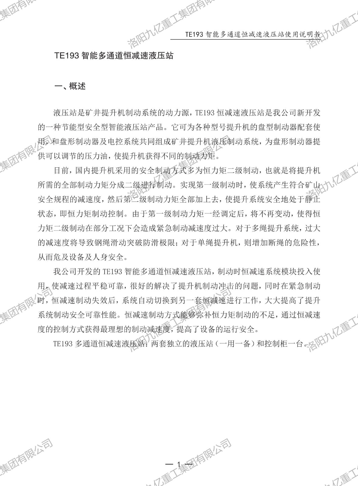 智能多通道恒減速液壓站TE193使用說(shuō)明書(shū)